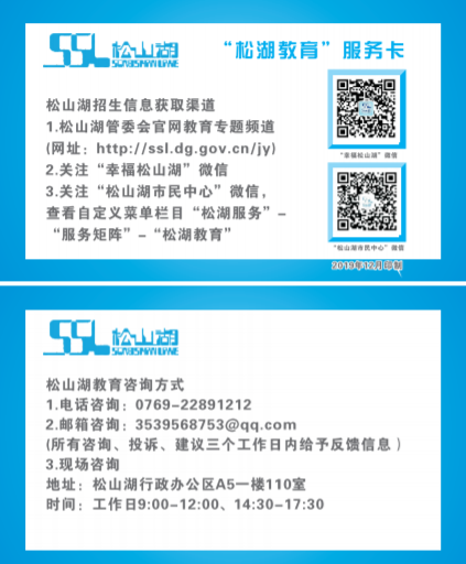 1.松山湖管委会官网教育频道(网址:http://ssl.dg.gov.cn/jy)