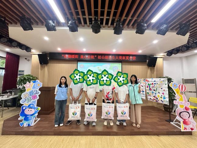 在结营仪式上,孩子们与家长通过视频回顾在夏令营的5天经历。随后,全体营员参与“共创夏令营”集体绘画活动,用色彩和创意留下美好回忆。随后,松山湖社会事务局为孩子们颁发“优秀营员”证书和关爱物资。