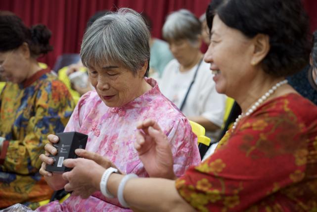 发放现场,长者们接过暖心包后纷纷打开细看。包内物品配备齐全,从保障安全的防滑垫、小夜灯,到关爱健康的血压计、智能手环,再到丰富生活的收音机,每一样物品都彰显着对长者健康生活的细致关怀。