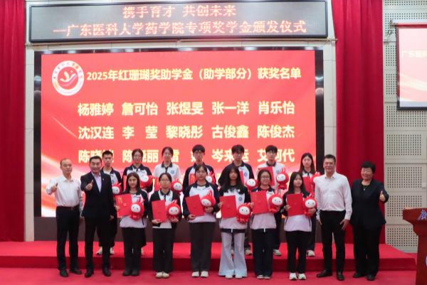 仪式颁发的“红珊瑚奖助学金”,是广东红珊瑚药业有限公司通过东莞市慈善会定向捐赠10万元的慈善项目。社会事务局和松山湖科学城慈善会在此过程中积极发挥引导与桥梁作用,推动慈善资源精准对接高校育人实际需求。在仪式上,共有20名品学兼优的药学院学生获得了助学金支持。